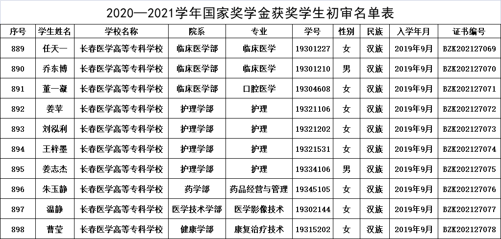 2021年12月17日教育部公布《2020—2021学年度本专科生国家奖学金获奖者名单》。国家奖学金每年评选一次,今年参评的全国高校“国家奖学金”共有2750余所,参评学生2700多万人,共评出60000个学子,获奖率为0.2%。今年,我校有10名同学获此殊荣。